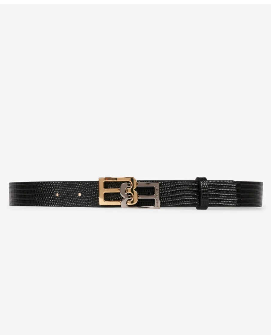 Ceinture logo en cuir stampè lezard noir