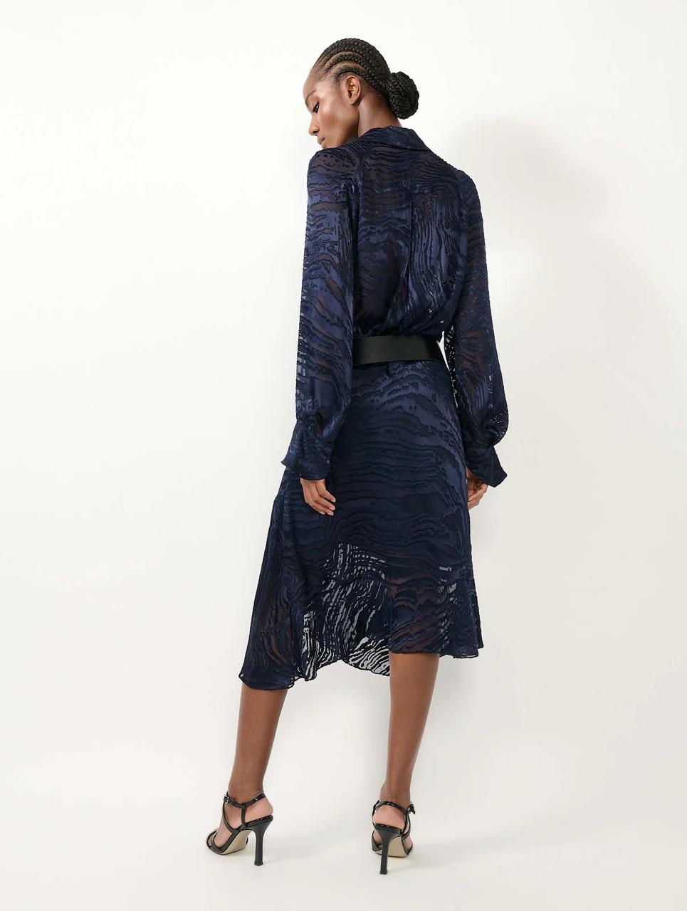 Jupe asymètrique en satin dèvorè navy