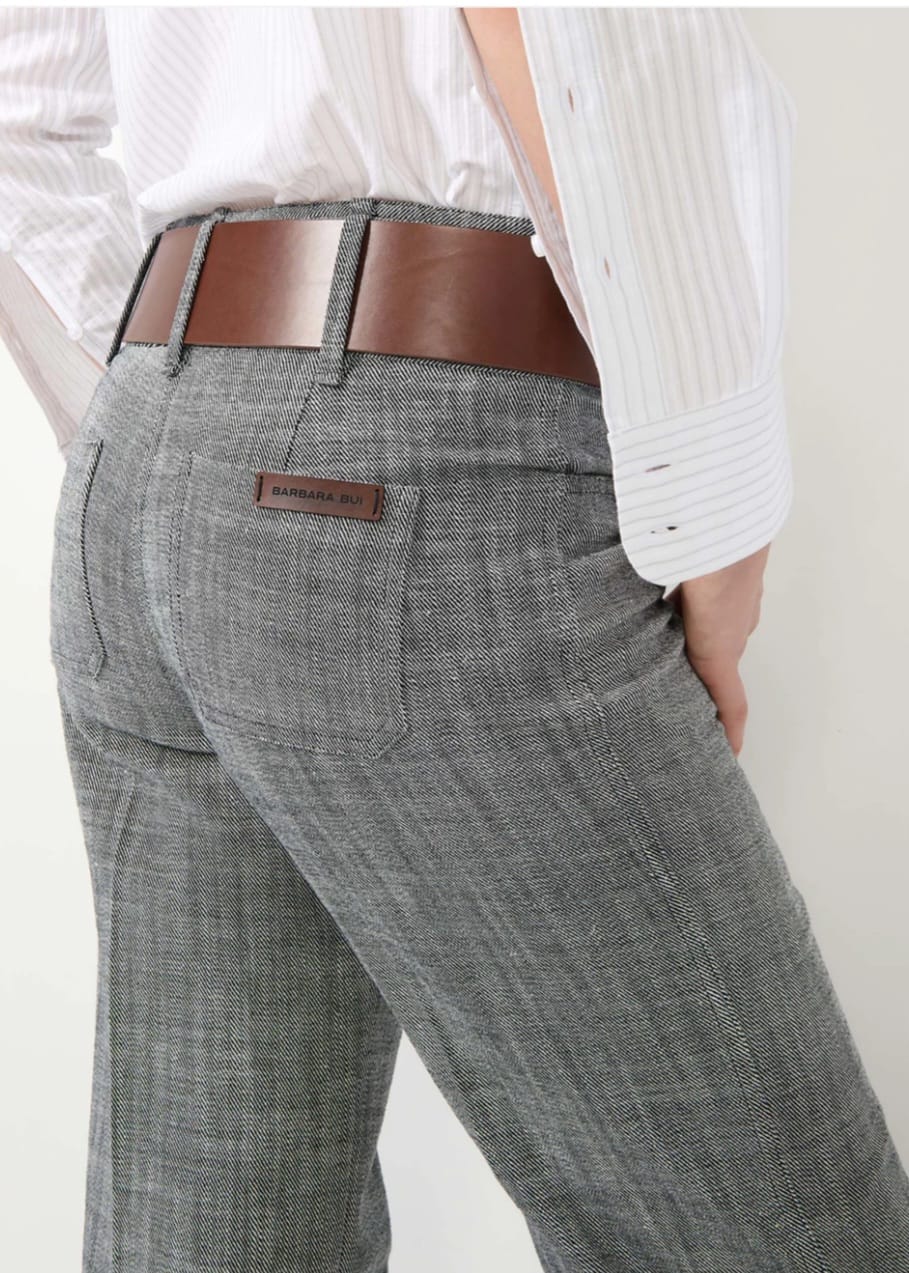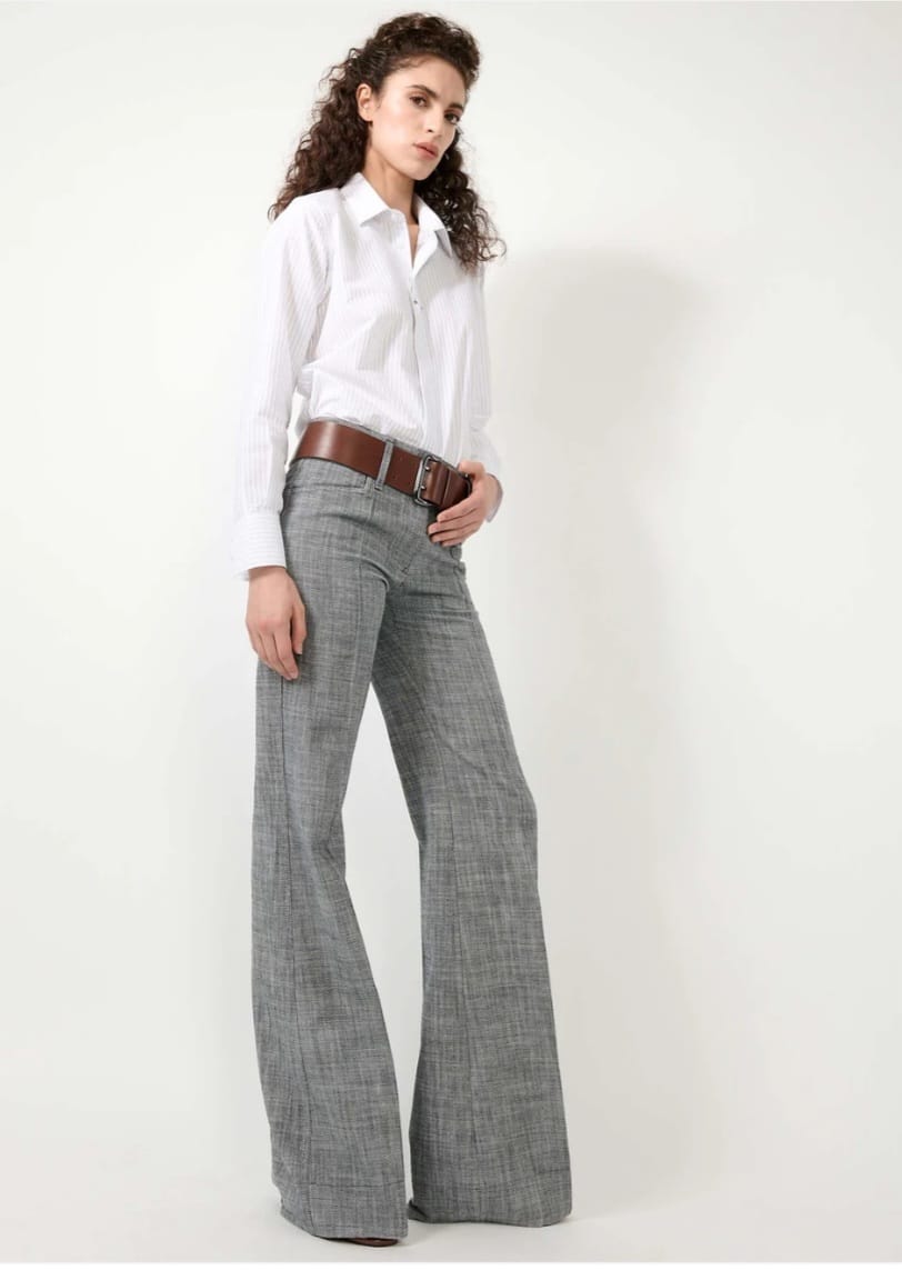 Pantalon flare en sergè de coton gris