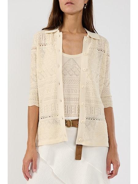 Cardigan en maille ajourè beige